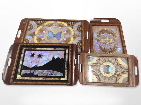 Four graduated butterfly wing trays, largest 62 cm wide