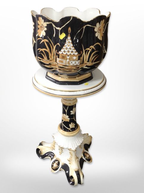 A contemporary continental ceramic jardiniere on stand, height 87cm.
