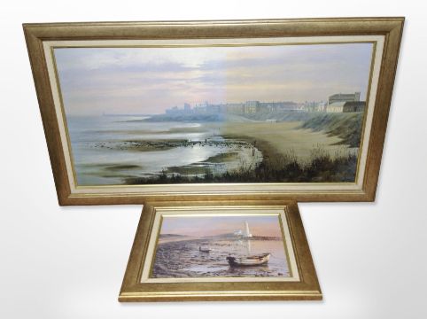 After Ivan Lindsey : Two coastal scenes, colour prints, largest 116cm x 65cm overall.
