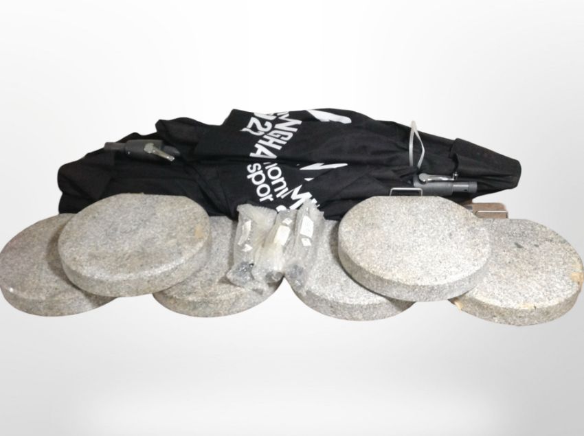 A group of garden parasols and stands.