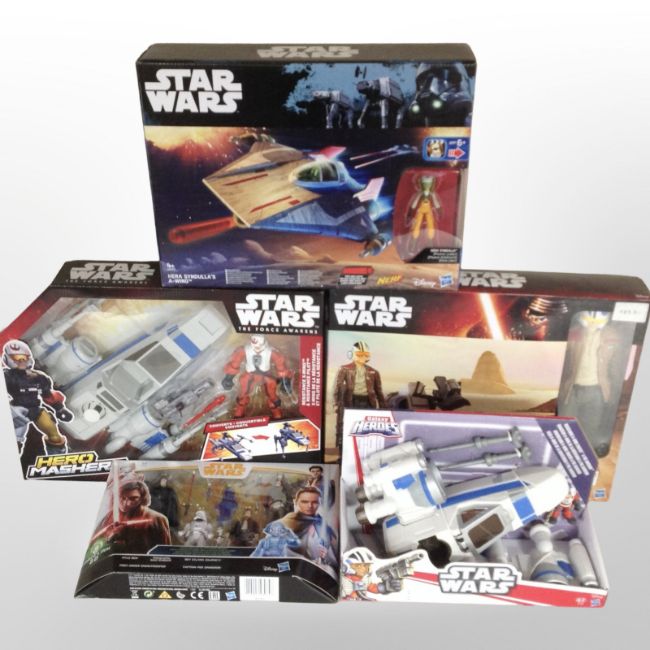 Five Hasbro Disney Star Wars figurine sets/models, boxed.