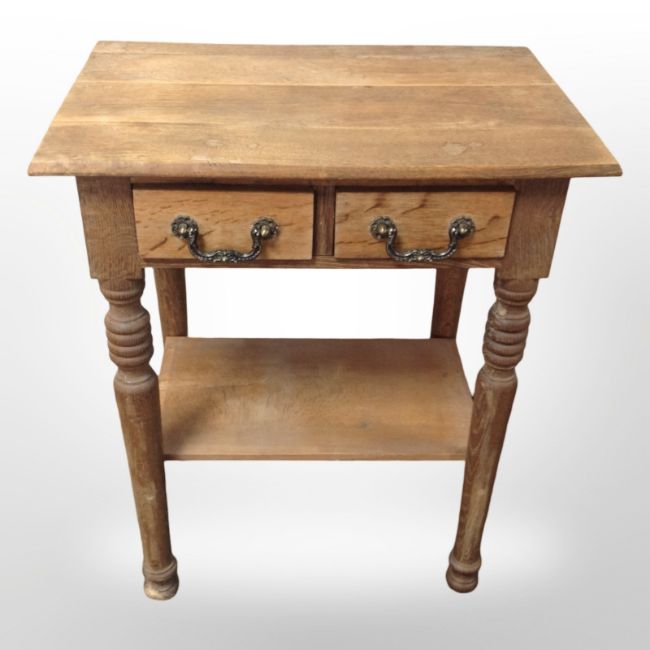 A continental blond oak side table, 54 cm x 37 cm x 66 cm