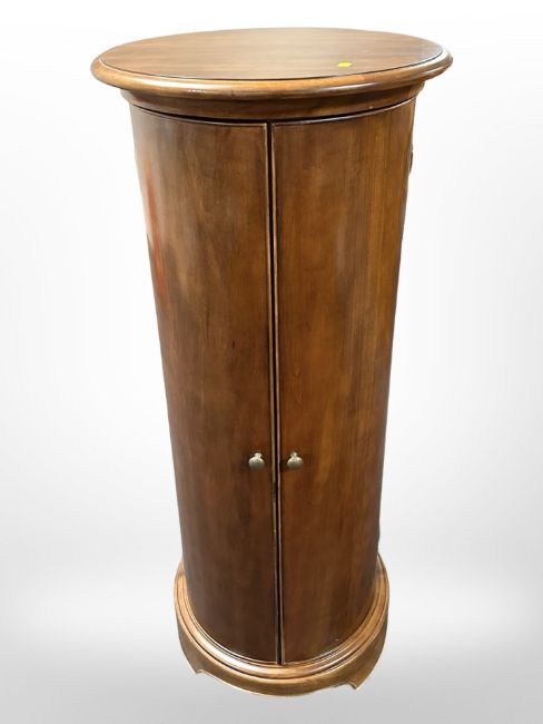 A Willis and Gambier cylindrical double door cabinet, with four internal wicker baskets, height 120 cm, diameter 50 cm