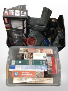 A group of board games, remote-controlled helicopter, toys, set of lawn bowls, etc. (2 boxes)