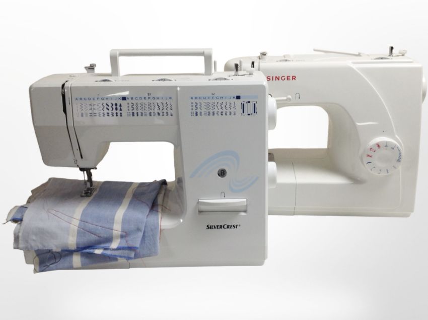 A Singer electric sewing machine, and a Silver Crest electric sewing machine (no plugs or pedals).