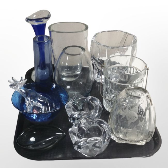 A group of Scandinavian glass vases, pair of tealight holders, etc.