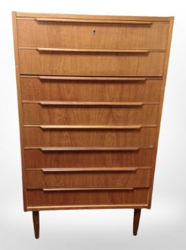 A 20th century Danish teak and pine eight drawer chest, 75 cm x 47 cm x 130 cm