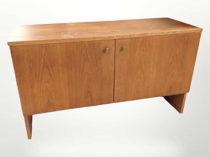 A 20th century Danish teak double door low cabinet, 110 cm x 42 cm x 62 cm