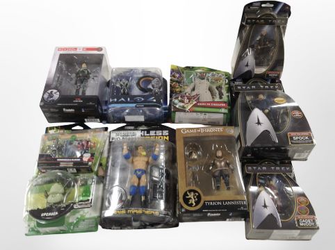 10 various Bandai, Playmates and other figurines including Star Trek, Ben 10, Teenage Mutant Ninja Turtles, Games of Thrones, etc., boxed.