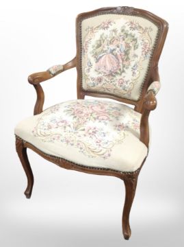 A continental salon armchair in tapestry fabric.