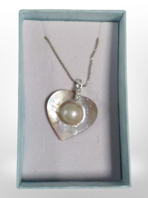 A silver blister pearl necklace.