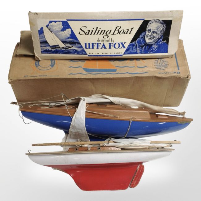 Two model pond yachts, one in original box.