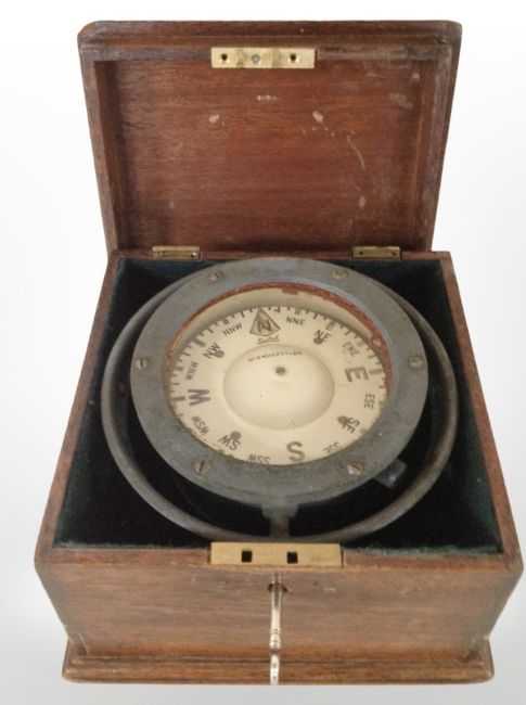 A Sestrel ship's compass in oak case.