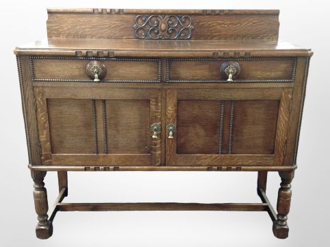 An Edwardian carved oak sideboard, 136cm wide x 51cm deep x 112cm high.