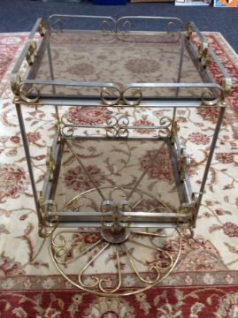 A gilt metal and glass two-tier occasional table, height 61cm.