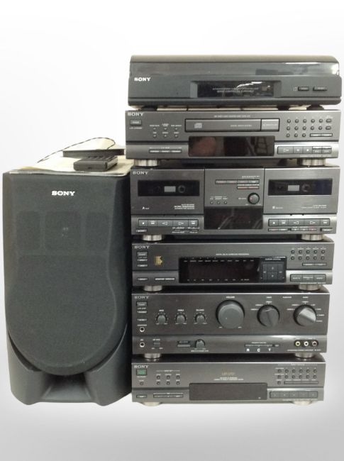 A Sony automatic stereo turntable system PS/LX 52P, together with five further Sony hi/fi separates, pair of speakers, manual and remote control