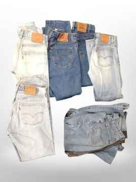 A quantity of vintage Levi Strauss denim jeans. (1 box)