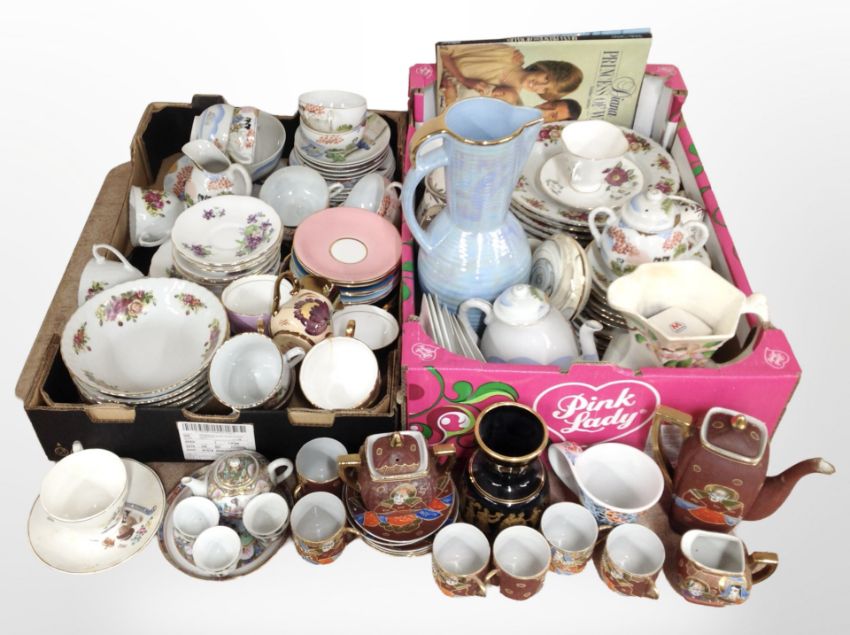 A collection of tea, coffee and dinner porcelain wares including Japanese export pieces, Royal Norfolk, etc. (2 boxes)