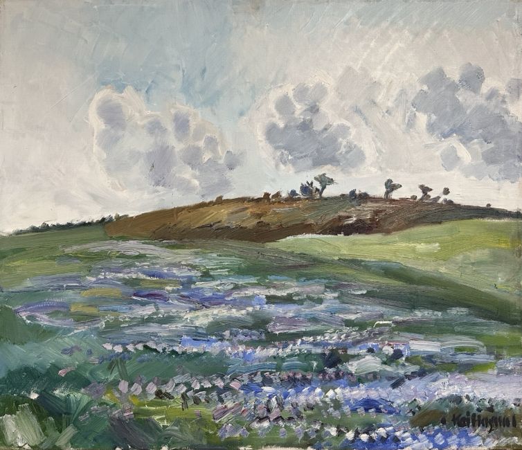 Kai Hargensen : Flowers on a hillside, oil on canvas, 69cm x 59cm.