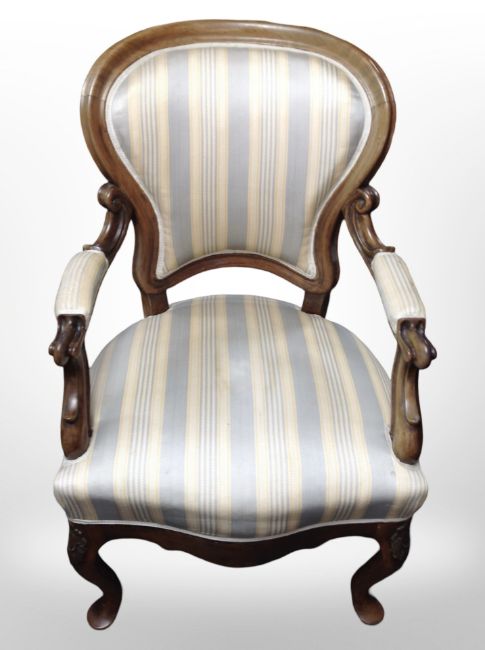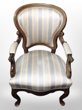 A 19th-century continental carved mahogany armchair, width 59cm.