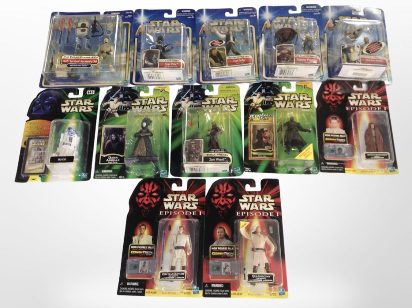 12 Hasbro Star Wars figurines including the Phantom Menace, The Empire Strikes Back, etc.