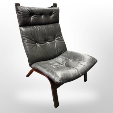 A 20th-century Danish black leather bentwood relaxer chair, width 60cm x height 96cm.