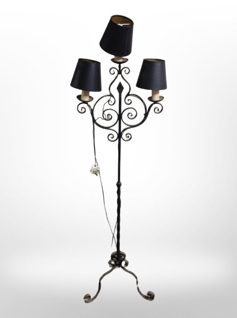 A wrought-iron standard lamp.
