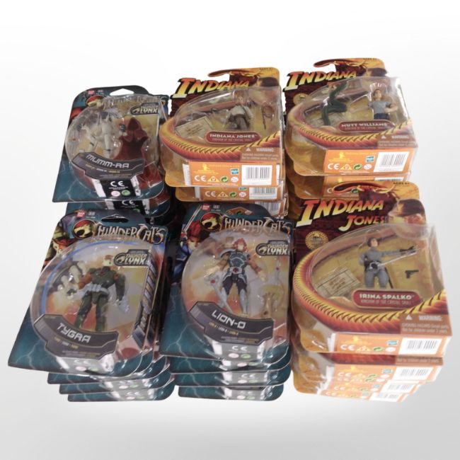 30 Hasbro and Bandai Indiana Jones and Thundercats figurines, boxed.