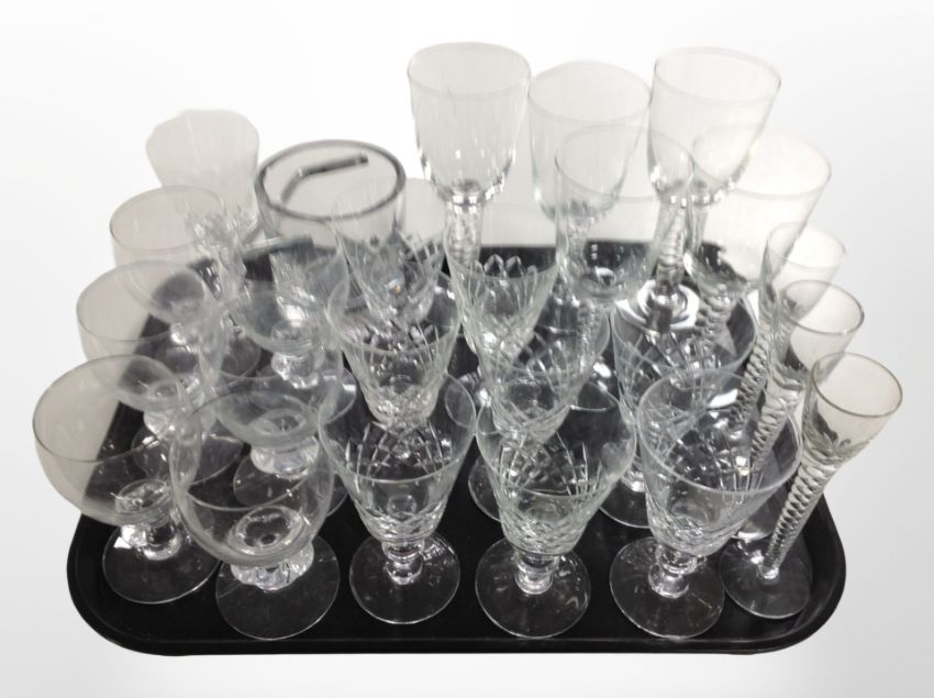 23 assorted crystal drinking glasses and a further swing-handled jar.