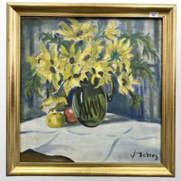 Danish School : Still life with sunflowers in a vase, oil on canvas, 61cm x 63cm.