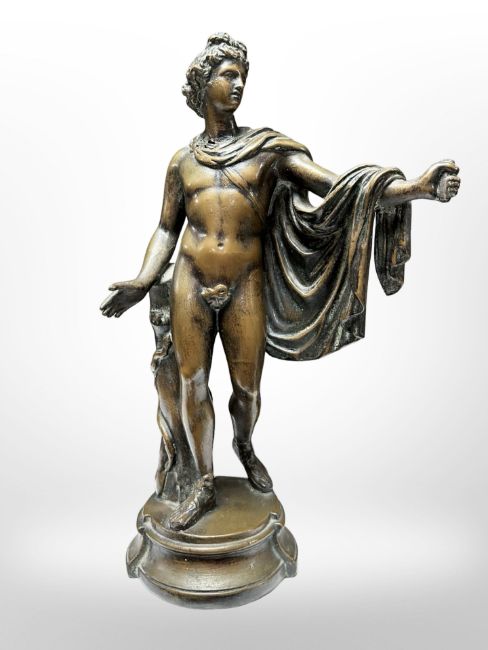 A 19th-century hollow cast-bronze figure of a Grecian man, height 37cm (restored).