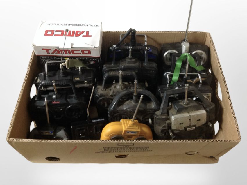 A collection of remote control handsets. (1 box)