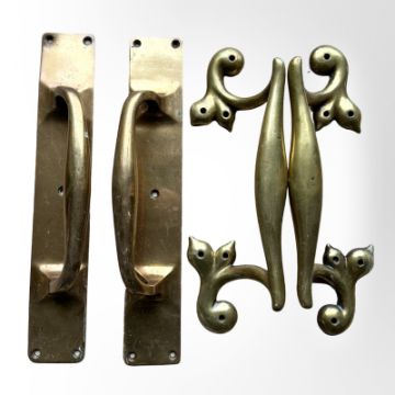 Two pairs of early-20th century brass door handle pulls, length 30cm.