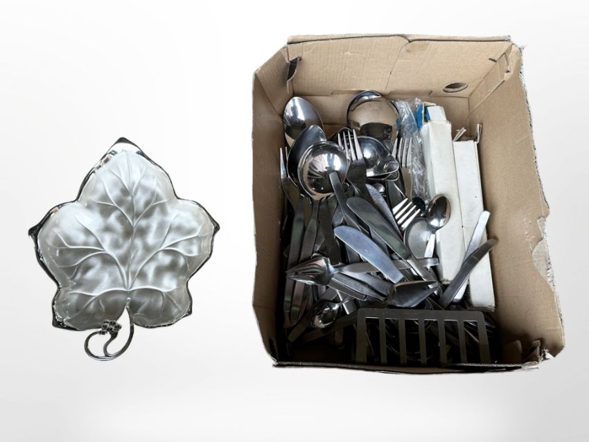 A quantity of Viners stainless steel flat ware, and a silver-plated leaf dish.