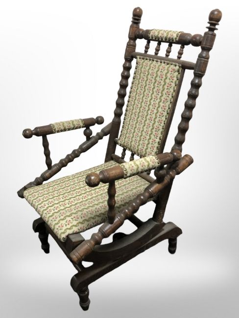 An early-20th century oak bobbin-turned rocking chair.