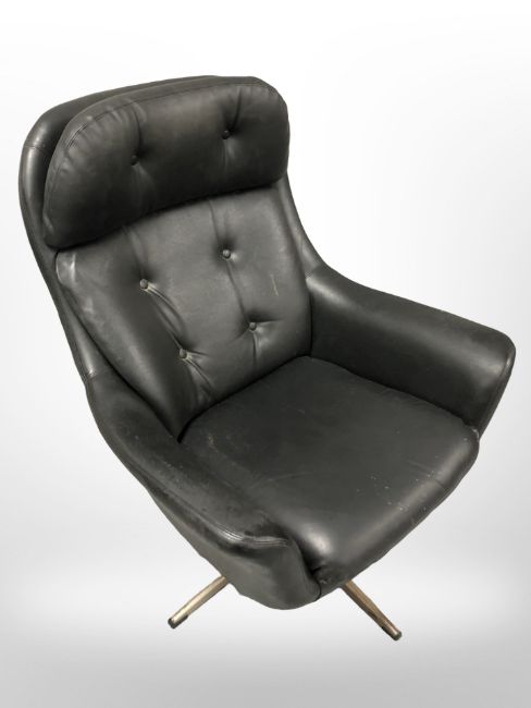 A 20th century Scandinavian black stitched leather swivel armchair, on chrome support