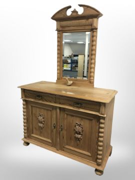 A late-19th century continental carved pine double-door sideboard on bun feet, with removable mirror back, sideboard 120cm wide x 52cm deep x 90cm high.