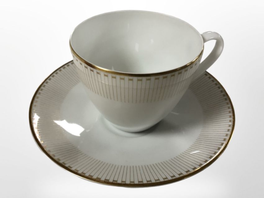 A large quantity of Argberg gilt porcelain tea and dinner wares. (1 box)