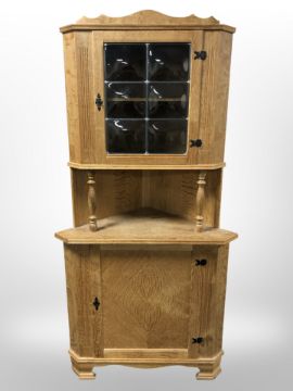 A Danish blond oak corner cabinet with leaded glass cabinet door, height 175 cm