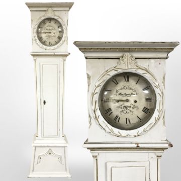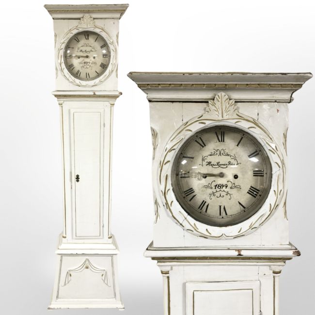 A Scandinavian 19th century painted and gilt long case clock, height 194 cm