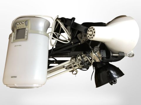 A vintage angle-poise lamp, further contemporary lamp, and a Philips wake-up light. (1 box)