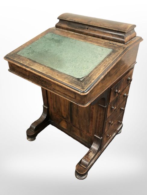 A Victorian walnut Davenport, width 53 cm