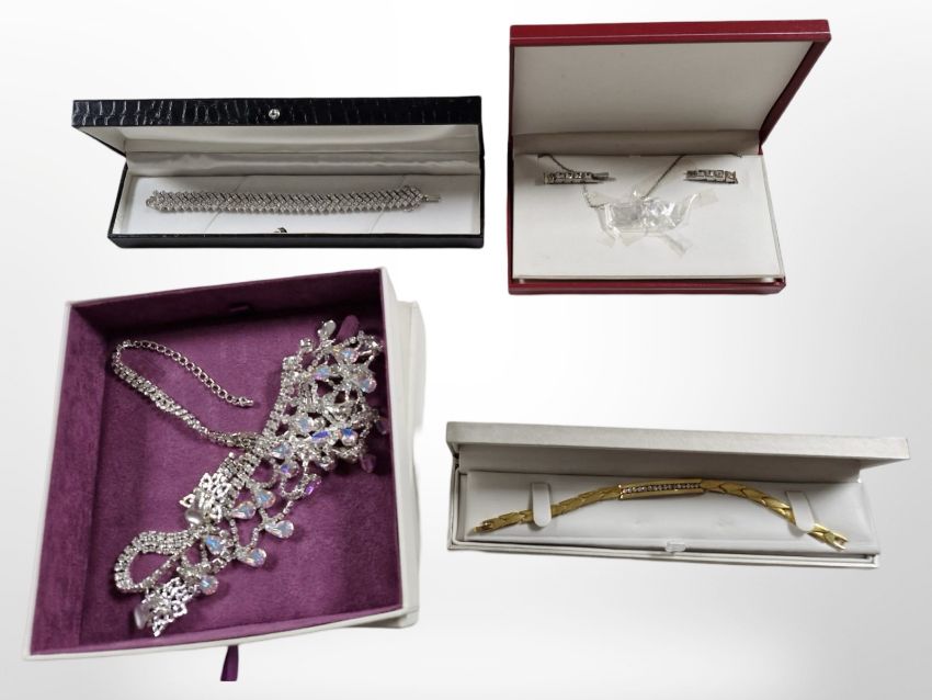 A group of costume pendants and earrings.