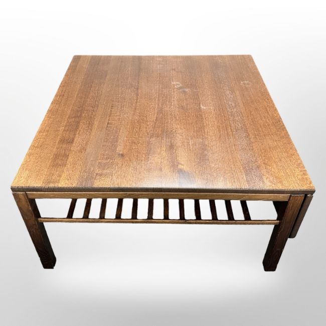 A Danish teak Haslev drop leaf square coffee table with under shelf, 105 cm x 55 cm high