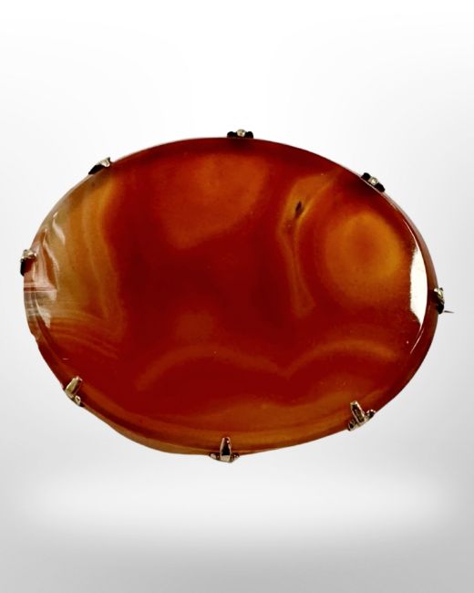 A gold mounted antique hardstone brooch, 4cm by 5cm.