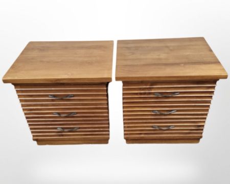 A pair of reproduction three drawer bedside chests, width 50 cm