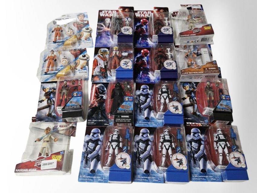 16 Hasbro Disney Star Wars figurines including The Force Awakens, The Clone Wars, etc., boxed.