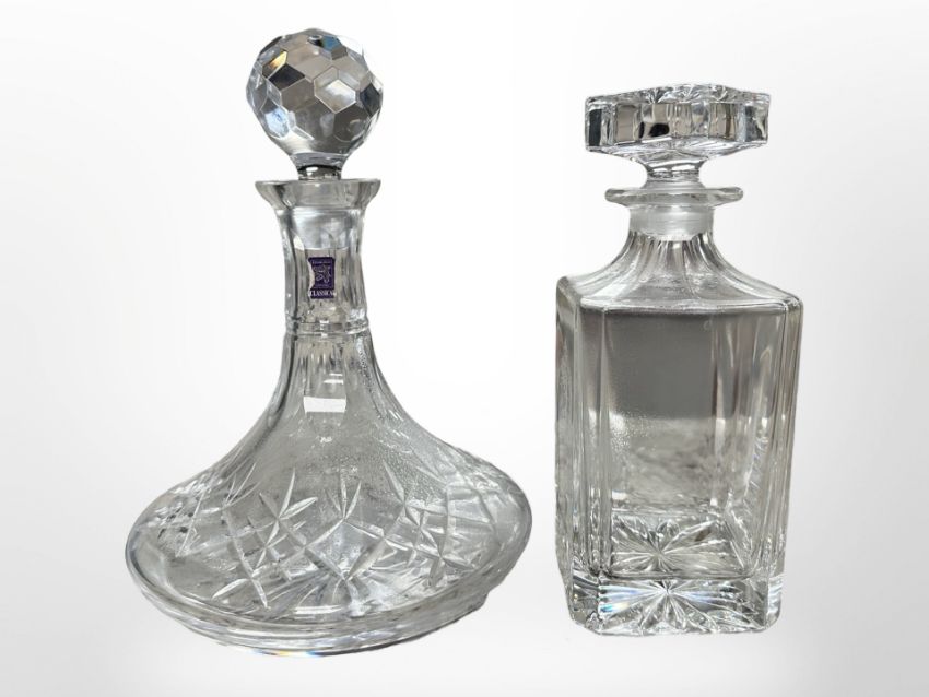 An Edinburgh crystal Classical ship's decanter, plus another, tallest 25cm.