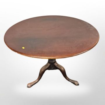 A George III-style mahogany tilt-top circular tripod table, diameter 100cm.