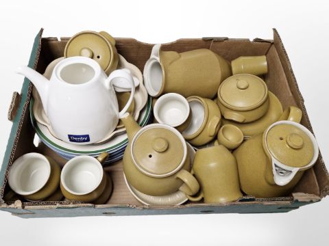 A collection of Denby pottery tea and dinner wares. (1 box)